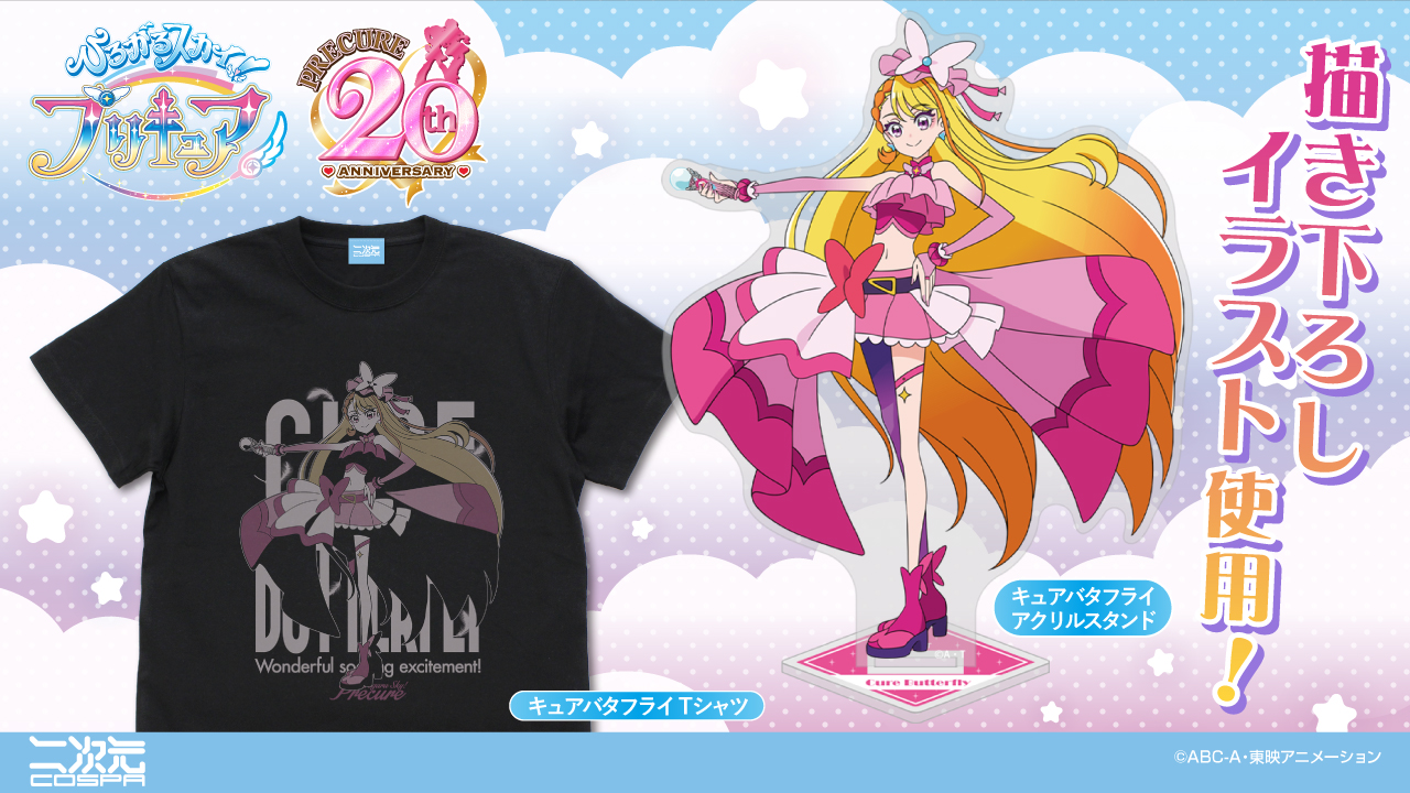 『ひろがるスカイ!プリキュア』に登場するプリキュアのひとり、「キュアバタフライ」のアクリルスタンド&大人サイズのTシャツが新発売!