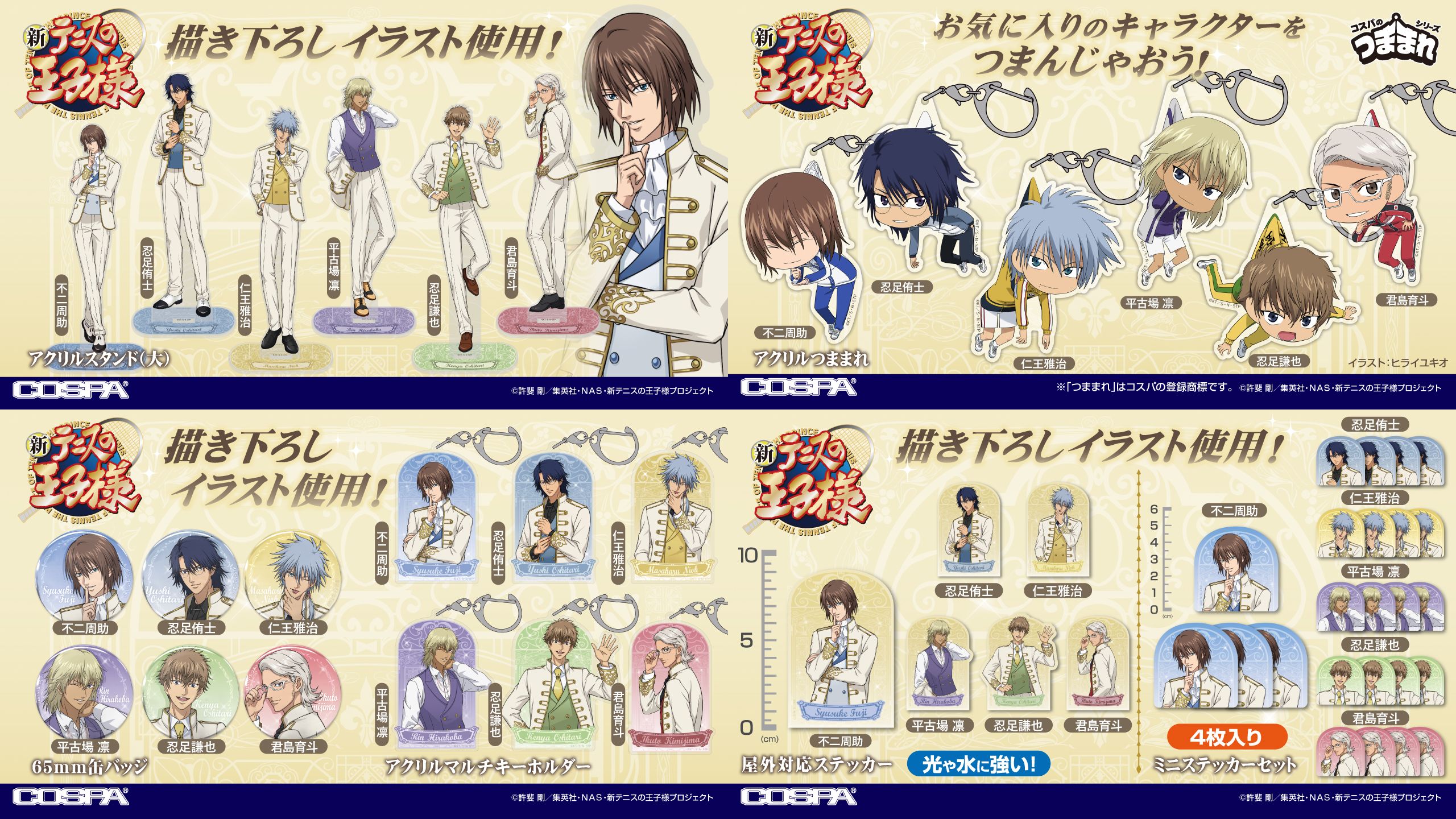 『新テニスの王子様』より“不二周助/忍足侑士/仁王雅治/忍足謙也/平古場 凛/君島育斗”たち6人の描き下ろし“王子様”イラストが新グッズになりました。