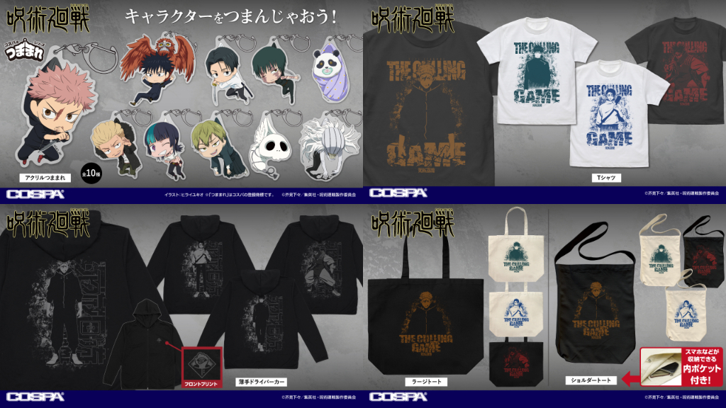 TVアニメ『呪術廻戦』より、「虎杖悠仁」「伏黒 恵」「乙骨 憂太」たちの新作アクリルつままれをはじめ、Tシャツ、トートバッグなど、様々な新商品がCOSPA(コスパ)から登場!